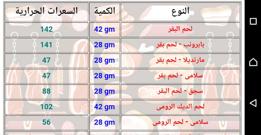 Features MOD APK of جدول السعرات الحرارية - رجيم