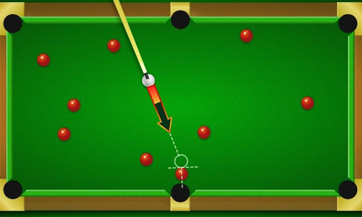 In this game there will be a pool table with 10 randomly placed red balls. First you need to decide the position of the white ball, then you need to hit the white ball with the cue and let the white
