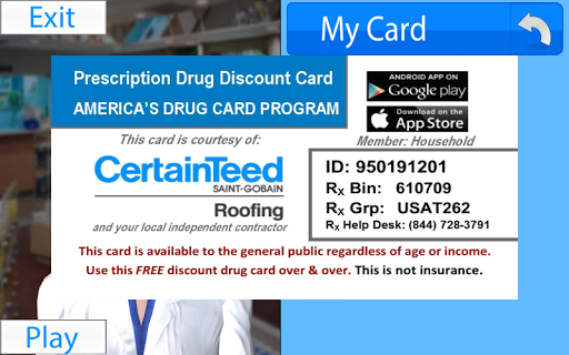 This free app will allow you to save an average of 15-55% on your prescription medications, look up drug pricing, pharmacy locations, order additional cards, answer frequently asked questions and speak to your pharmacist.