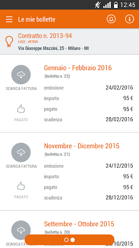 Displays the issue date, the period referred to by the consumption of gas and electricity, the amount to be paid in Euros, the amount paid, the expiration date and if the payment is made or not. Get your bills directly to your device is in synthetic format in the detailed format.